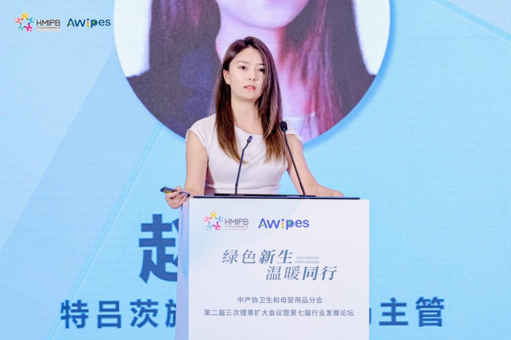 Kuinka edistää teollista muutosta vihreällä ja vähähiilisellä tavalla? "Laadukkaan kulutuksen aikakaudella kestävistä kuitumateriaaleista voi tulla äitien ja vauvojen pyyhintäteollisuuden muutoksen ydinkilpailukyky." Sateri Groupin vanhempi markkinointipäällikkö Yan Hui jakoi Ukes ®:n ja Lyocellin vihreät ja suorituskykyiset edut biohajoavina regeneroituina selluloosakuituina teemalla "Textured Fiber I Plant-derived Fiber Reconstructing the New Ecology of Maternal and Infant Wipes", joka tarjoaa kilpailukykyisempiä vihreitä raaka-aineratkaisuja hygienia- ja lastentarviketeollisuudelle.